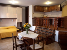 Appartement TypB: Einzimmer-Wohnung mit Seeblick, klimatisiert (ca.35 qm) für 2 Personen (mit 4 Schlafgelegenheiten), bestehend aus Schlafzimmer Küche und Wohnzimmer mit Schlafsofa, Safe, TV-Sat, Balkon mit Seeblick, 1 Bad mit